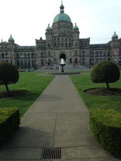 Yesterday we went back to Canada, but this time by ferry to Victoria, BC. Our first stop after getting off the ferry was the Parliament Building where we joined in on a tour and learned about some funny Parliament traditions. One is that whenever a new Speaker of the House is elected, he runs out of the room and the head of the opposition party chases him and drags him back! This is because in an older day when the Speaker reported to the King, if the King didn’t like what he said then “off with his head!” After the tour we rented bikes and rode along the coast. We stopped and ate lunch near the waters edge. It was beautiful! Then we rode through some of the neighborhoods. This was fun but challenging due to frustration around navigation issues. We made it back in time to catch our ferry but not to have dinner at The Fishhook, a restaurant recommended by a bike shop employee. This was disappointing.