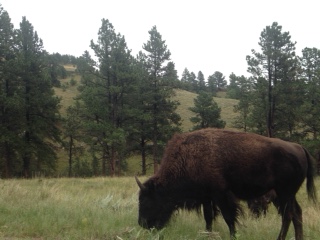 We saw a bunch of real buffalo today by the side of the Wildlife Loop Road in Custer State Park. This one was really close to our car! Before this on our way into the park we had to slow down because a single buffalo was walking in the road. We also saw a pronghorn and lots of prairie dogs.
