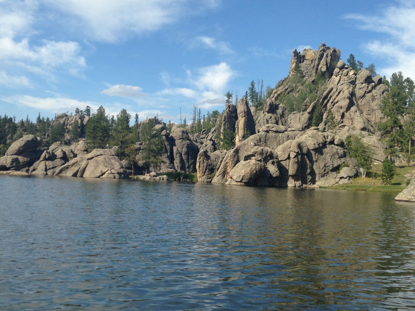 As if we weren’t tired enough, after hiking Harney Peak we went canoeing. Actually we did it at a restful pace, frequently stopping to marvel at the enormous rock formations in the middle of the lake. I took the canoe for a solo paddle while Charis explored one of the little rock islands. The wind picked up and it was no easy task getting back to her! We watched a wedding take place on the shore as well. Then we were officially tired!